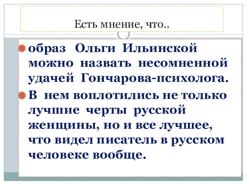 образ Ольги Ильинской можно назвать несомненной удачей Гончарова-психолога.