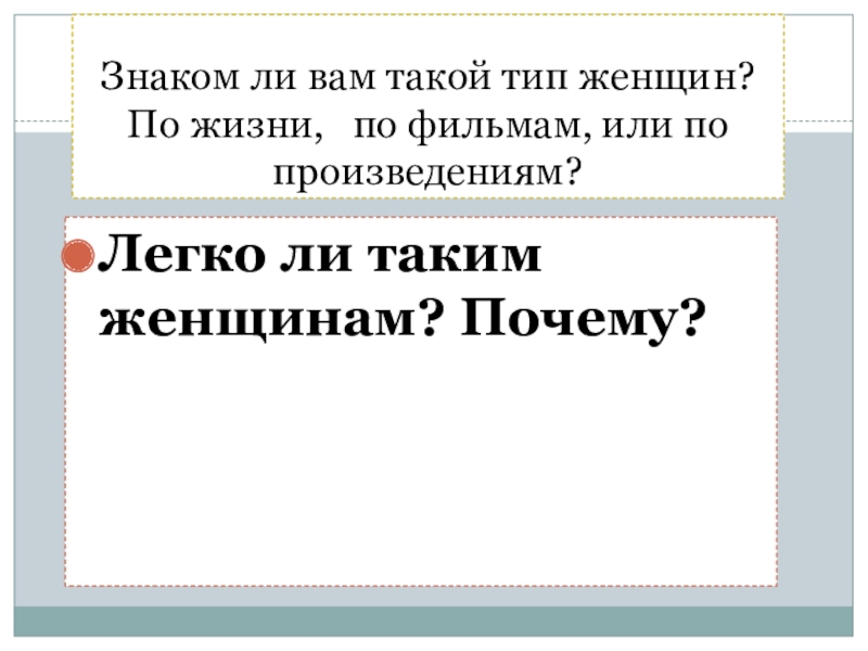 Слайд 22Знаком ли вам такой тип женщин? По жизни, по фильмам,