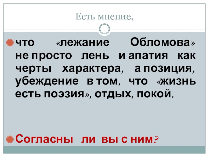 что «лежание Обломова» не просто лень и апатия как черты характера, а позиция,