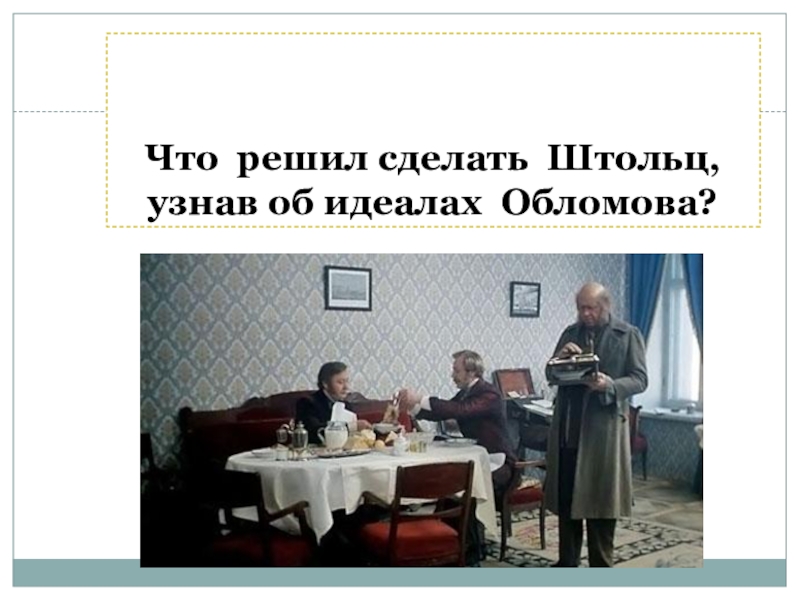 Слайд 7Что решил сделать Штольц, узнав об идеалах Обломова?