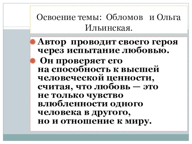Слайд 13Освоение темы: Обломов и Ольга Ильинская.