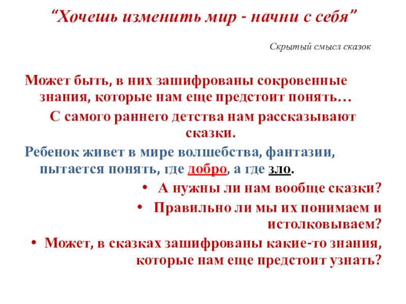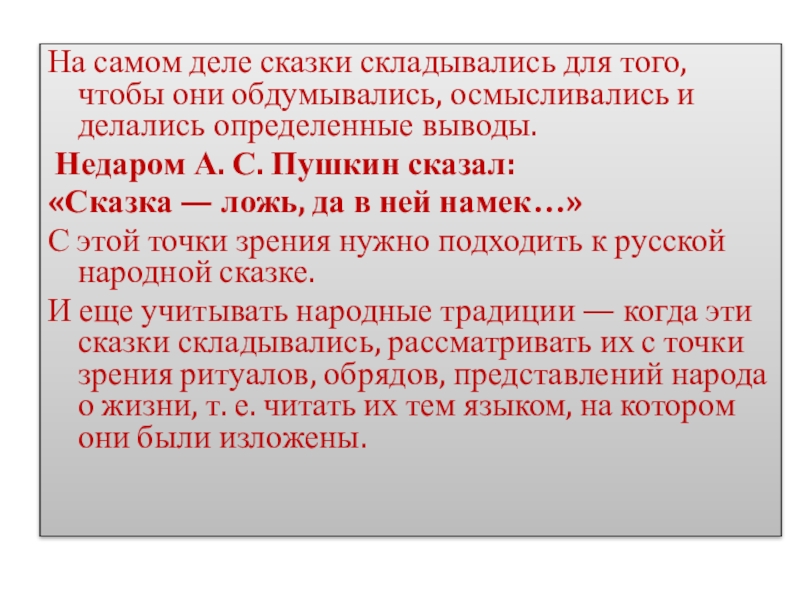 Слайд 15На самом деле сказки складывались для того, чтобы они обдумывались, осмысливались