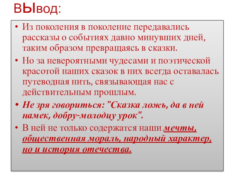 В ней не только содержатся наши мечты, общественная мораль, народный характер, но и история отечества.