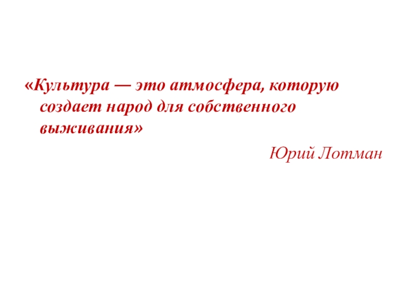 «Культура — это атмосфера, которую создает народ для собственного выживания»