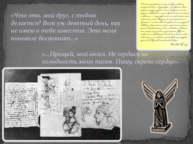 «…Прощай, мой ангел. Не сердись на холодность моих писем. Пишу, скрепя сердце».