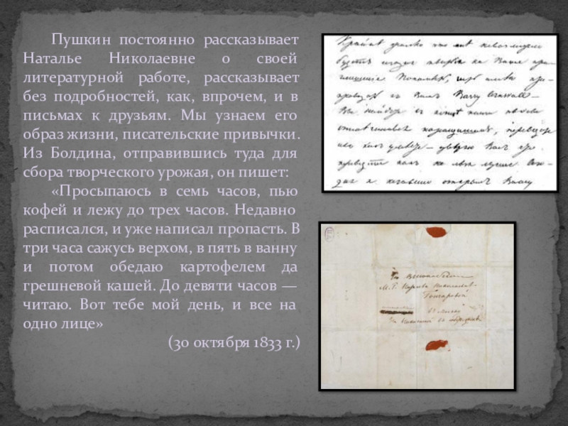 «…Сейчас, мой ангел, получил я твое письмо от 1-го мая. Благодарю тебя, что ты переждешь свои временные. Это мне доказывает твое благоразумие, и я тебя втрое за то люблю»