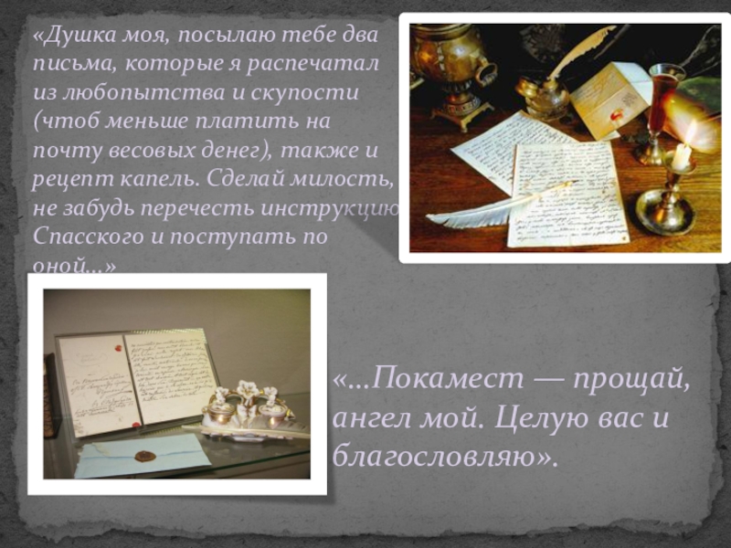 «…Покамест — прощай, ангел мой. Целую вас и благословляю».