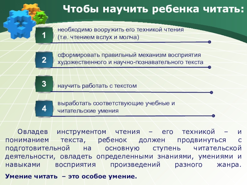 Овладев инструментом чтения – его техникой – и пониманием текста, ребенок должен продвинуться с подготовительной на основную ступень читательской деятельности, овладеть определенными знаниями, умениями и навыками восприятия произведений разного жанра.