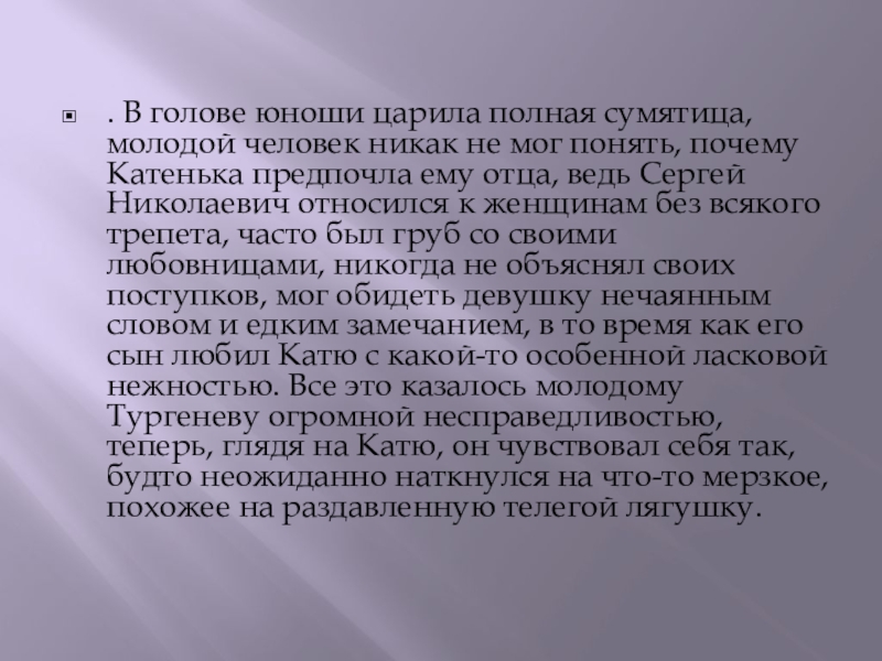 Слайд 8. В голове юноши царила полная сумятица, молодой человек никак не
