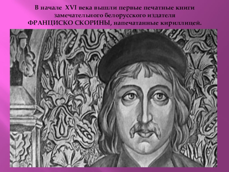 Слайд 26В начале XVI века вышли первые печатные книги замечательного белорусского издателя