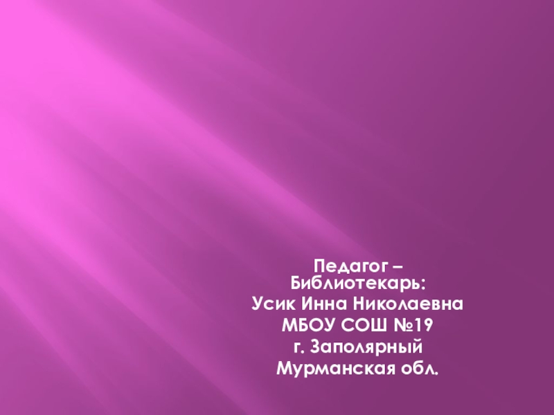 Педагог – Библиотекарь:Усик Инна Николаевна МБОУ СОШ №19г. ЗаполярныйМурманская обл.