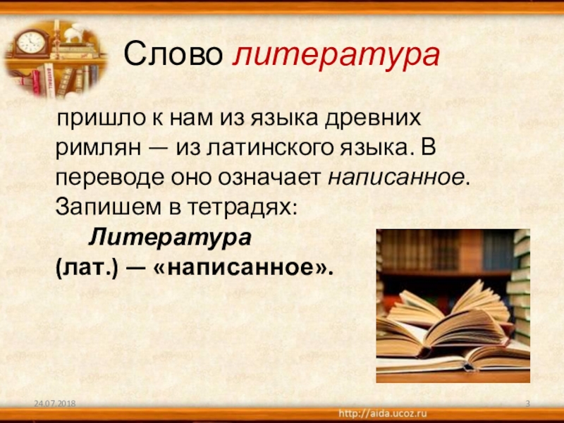 языка. В переводе оно означает написанное. Запишем в тетрадях:
