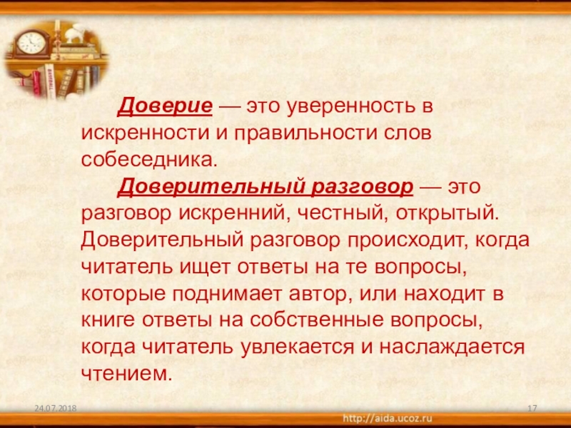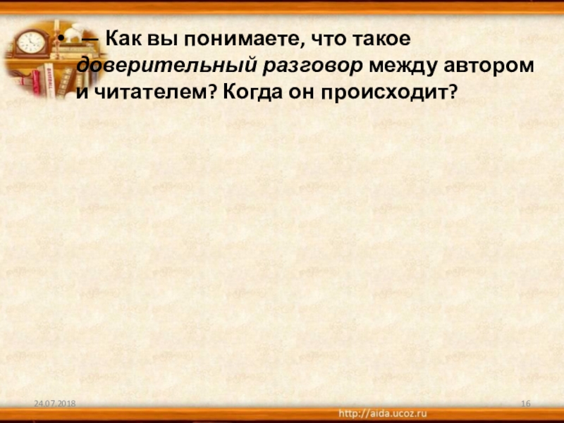 Слайд 16 — Как вы понимаете, что такое доверительный разговор между автором и читателем?