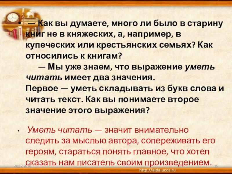 княжеских, а, например, в купеческих или крестьянских семьях? Как относились к книгам?