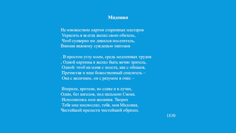 Тебя мне ниспослал, тебя, моя Мадонна,