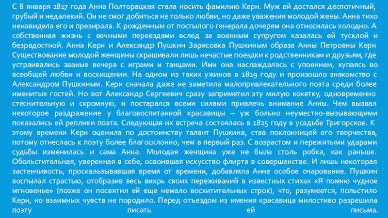 Слайд 11С 8 января 1817 года Анна Полторацкая стала носить фамилию Керн.