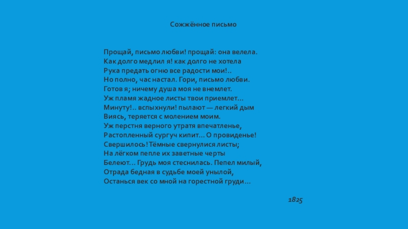 Талисман", "Храни меня, мой талисман" и "Сожженное письмо" - посвящены Елизавете Ксаверьевне Воронцовой, женщине, с которой Пушкин познакомился во время южной ссылки.