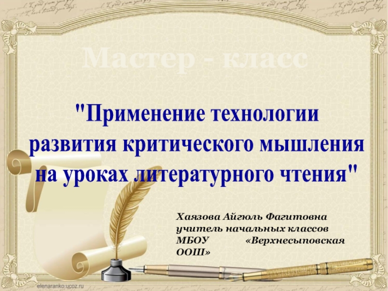 Презентация, доклад мастер-класс Применение технологии развития критического мышления на уроках литературного чтения