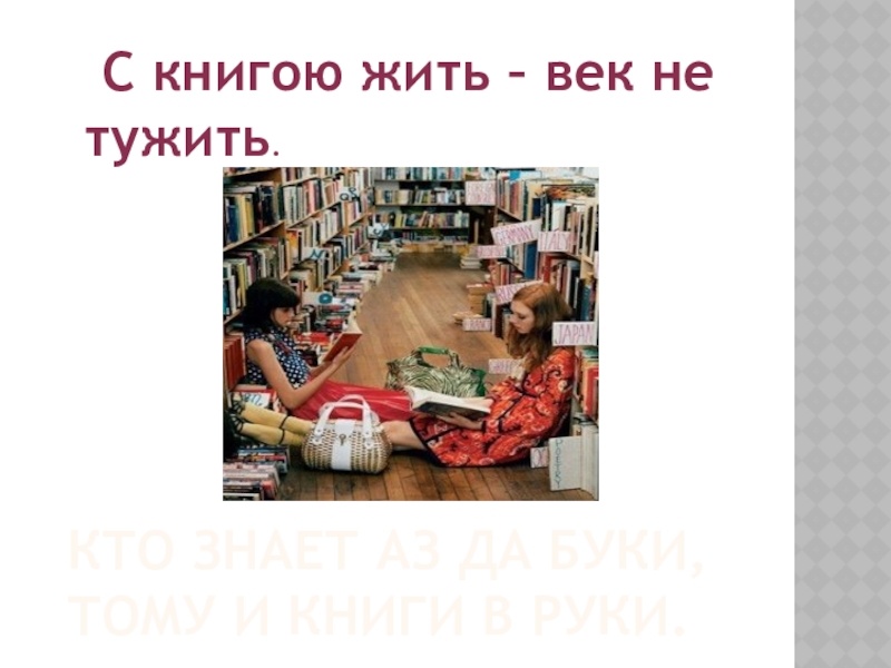 Слайд 4С КНИГОЮ ЖИТЬ – ВЕК НЕ ТУЖИТЬ.