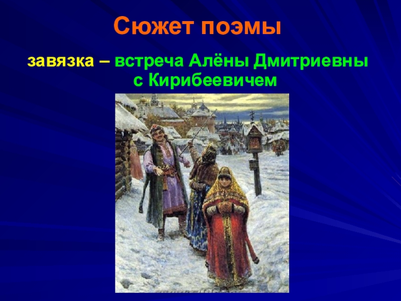 завязка – встреча Алёны Дмитриевны с Кирибеевичем