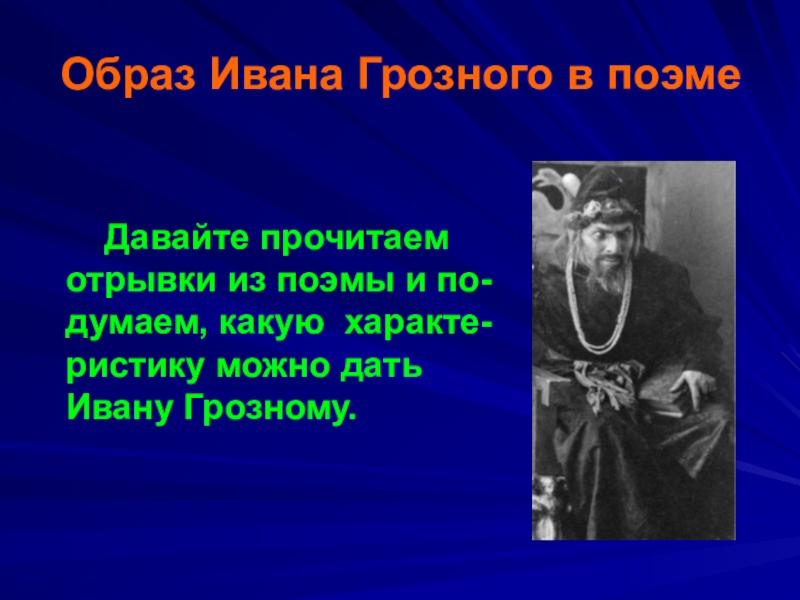 прочитаем отрывки из поэмы и по-думаем, какую характе-ристику можно дать Ивану Грозному.