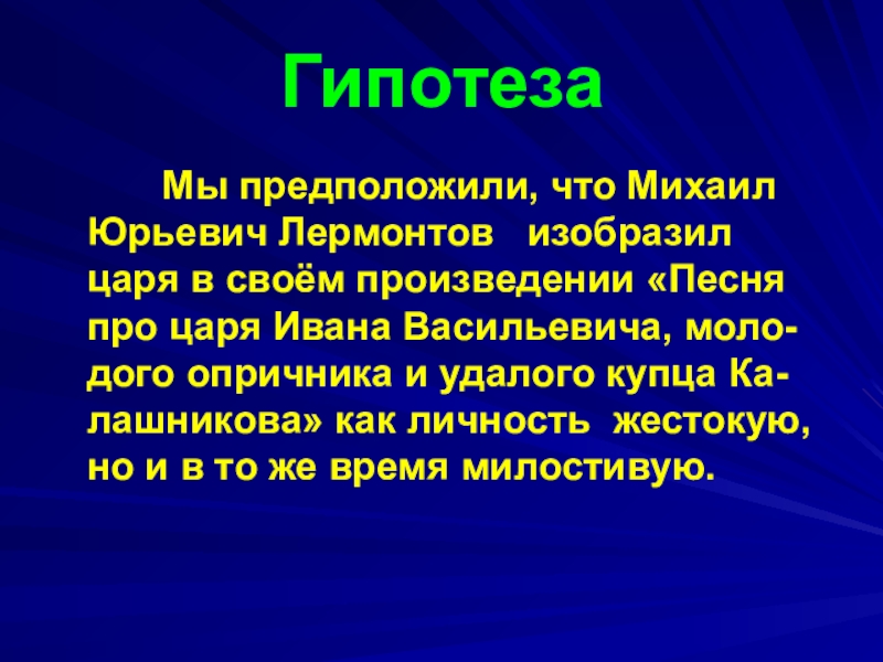 Итак, мы подтверждаем нашу гипотезу, что М.Ю.Лер-монтов в своём произведе-нии