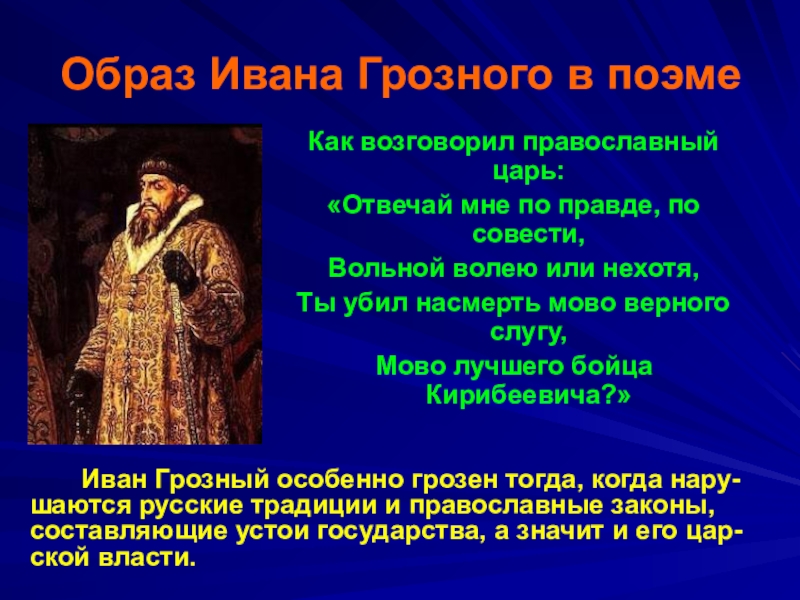 Лермонтова царь Иван Васильевич пред-стаёт перед нами великим грозным правителем.