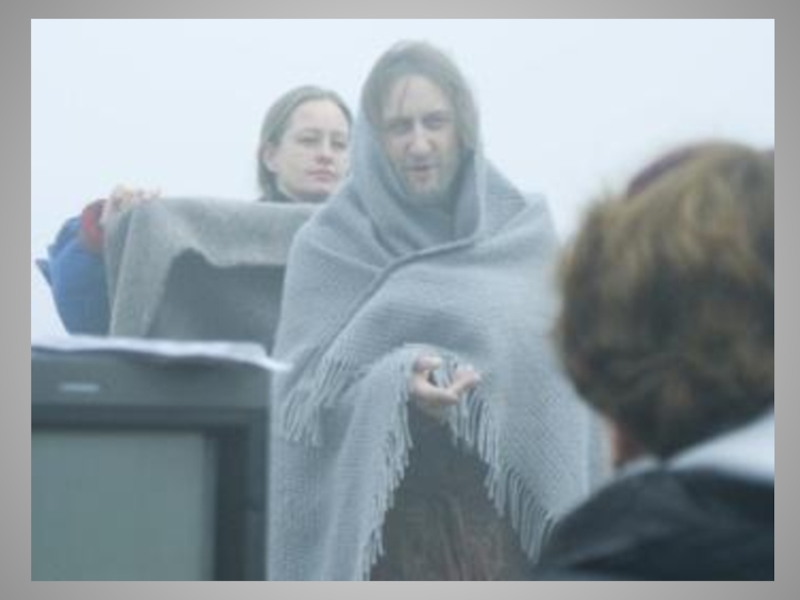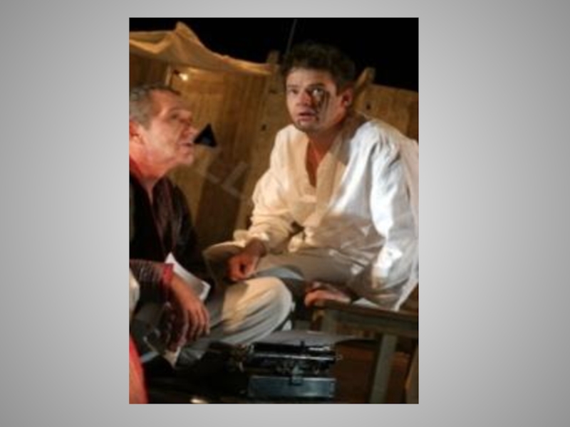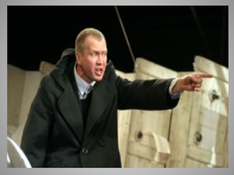 Слайд 58Брови у него насуплены, табачный дым так и валит изо рта.