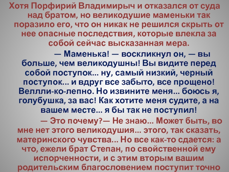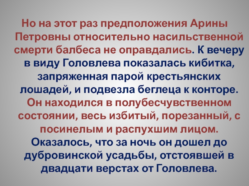 Но на этот раз предположения Арины Петровны относительно насильственной смерти балбеса