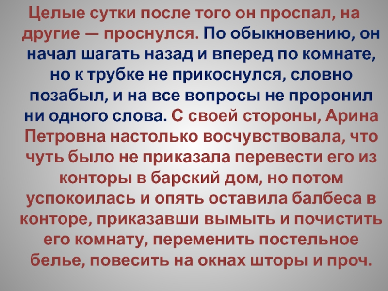 Слайд 208Целые сутки после того он проспал, на другие — проснулся. По