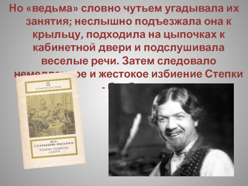 Слайд 8Но «ведьма» словно чутьем угадывала их занятия; неслышно подъезжала она к