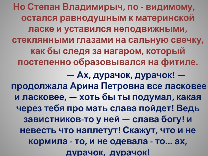 Слайд 212Но Степан Владимирыч, по - видимому, остался равнодушным к материнской ласке