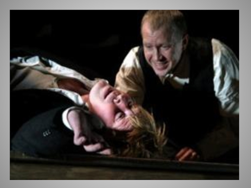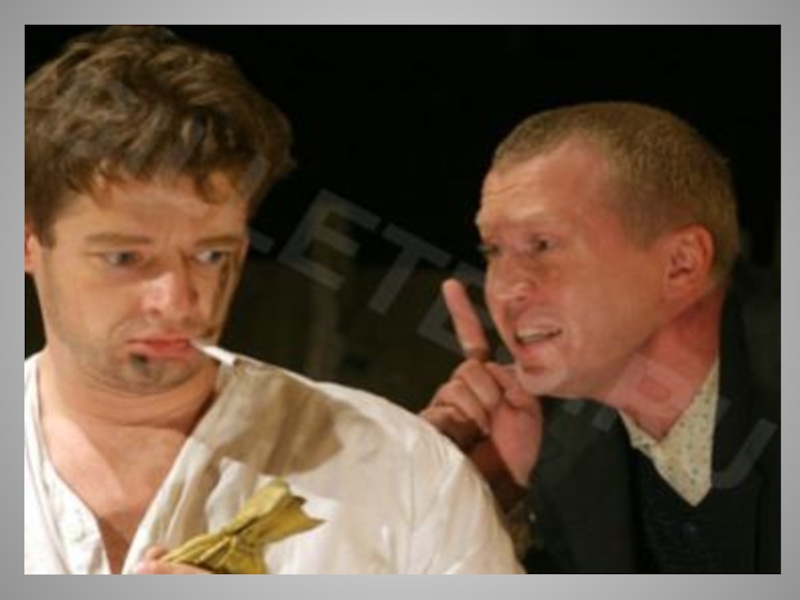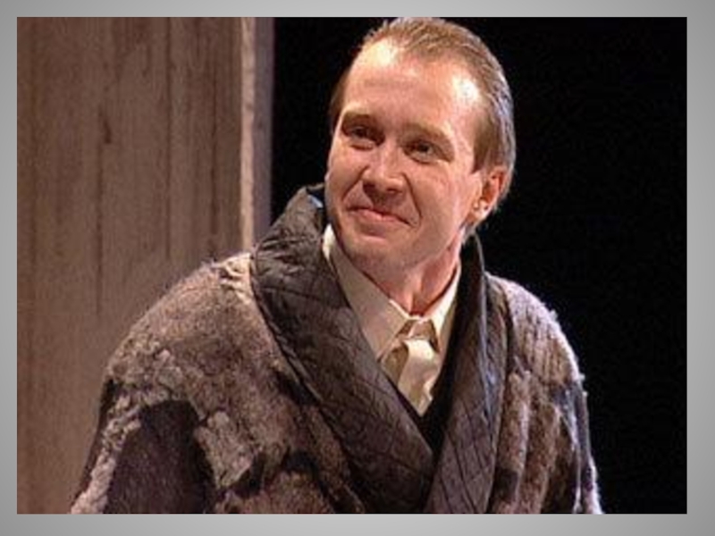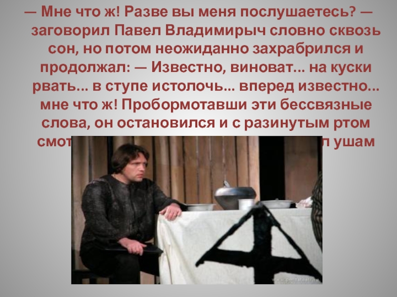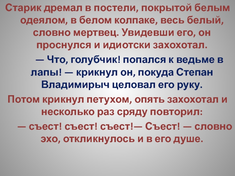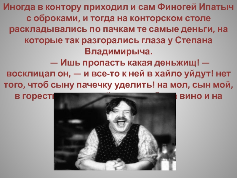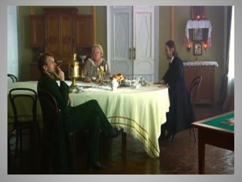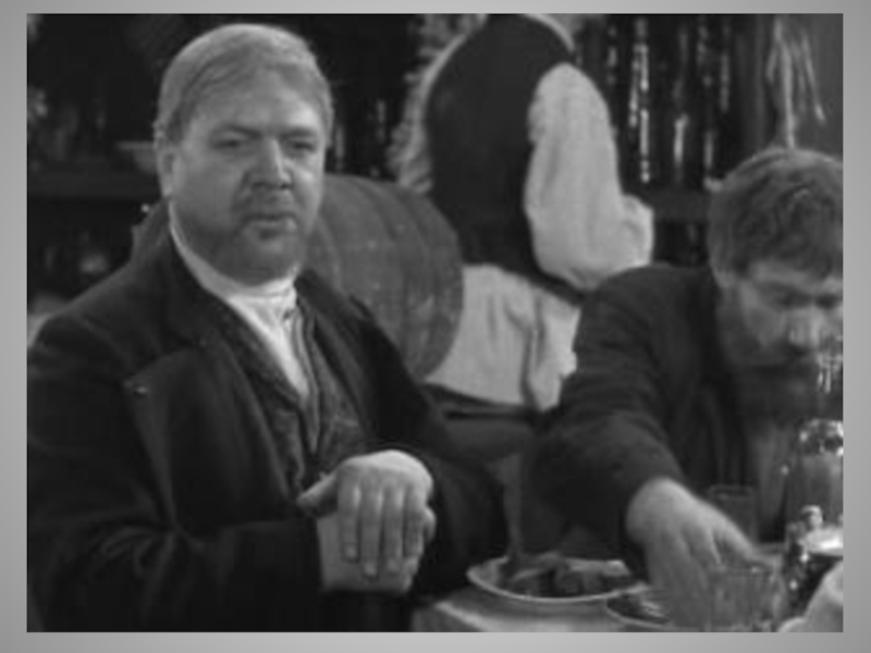 Слайд 52Выпивши, Степан Владимирыч принимается за колбасу, которая оказывается твердою, как камень,