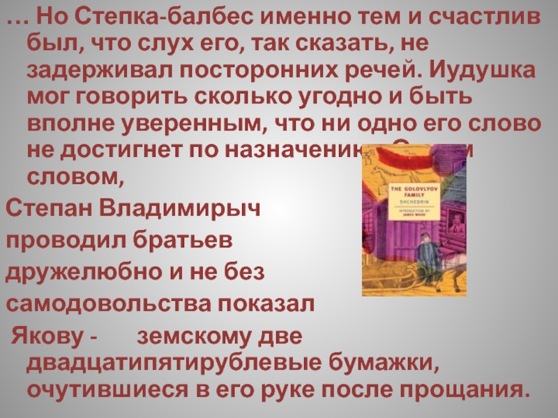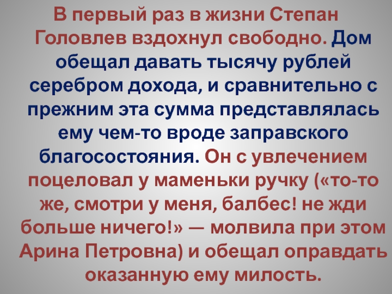Слайд 22В первый раз в жизни Степан Головлев вздохнул свободно. Дом обещал