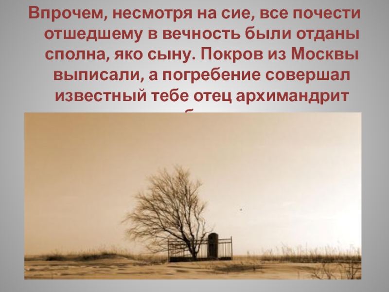 Слайд 228Впрочем, несмотря на сие, все почести отшедшему в вечность были отданы