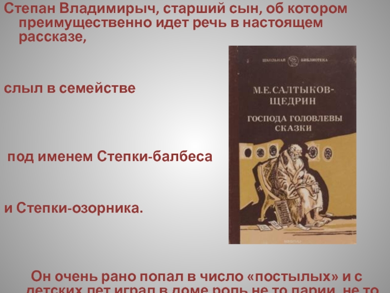 Слайд 5Степан Владимирыч, старший сын, об котором преимущественно идет речь в настоящем