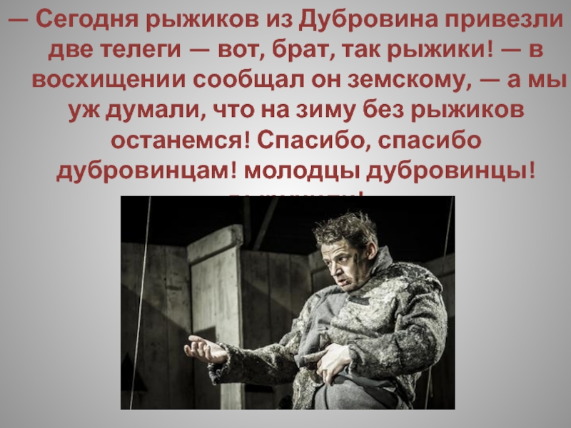 Слайд 56— Хлеб да соль, господа! — наконец, говорит он, — щи
