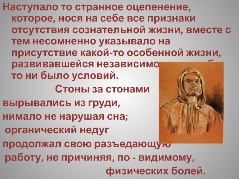 Слайд 188Наступало то странное оцепенение, которое, нося на себе все признаки отсутствия