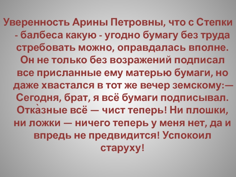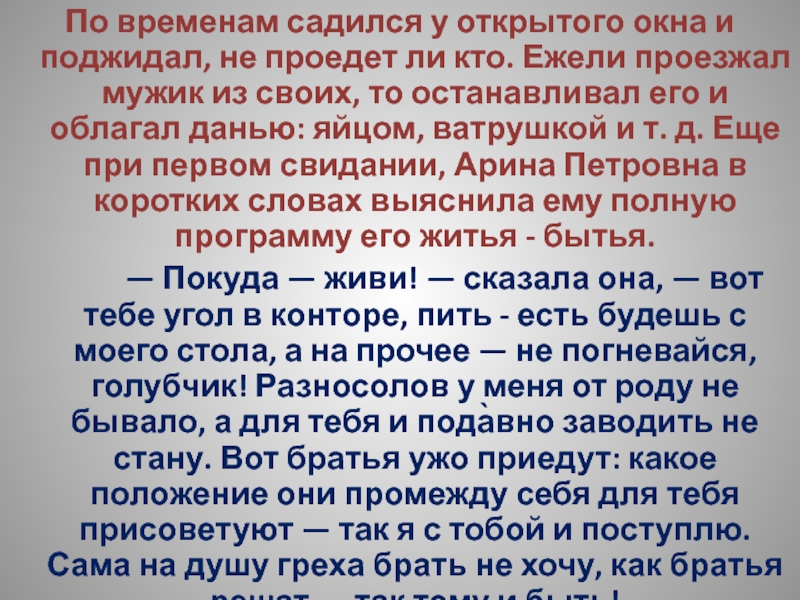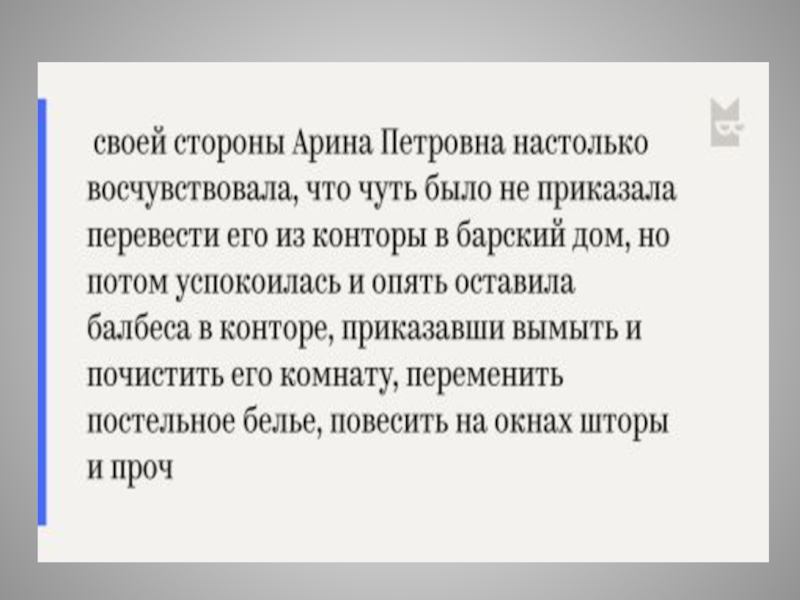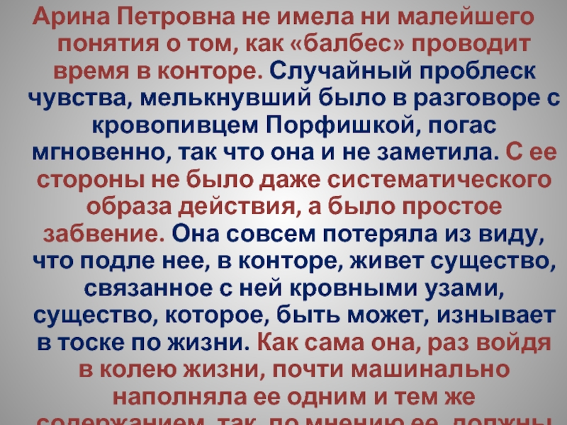 Слайд 192Арина Петровна не имела ни малейшего понятия о том, как «балбес»