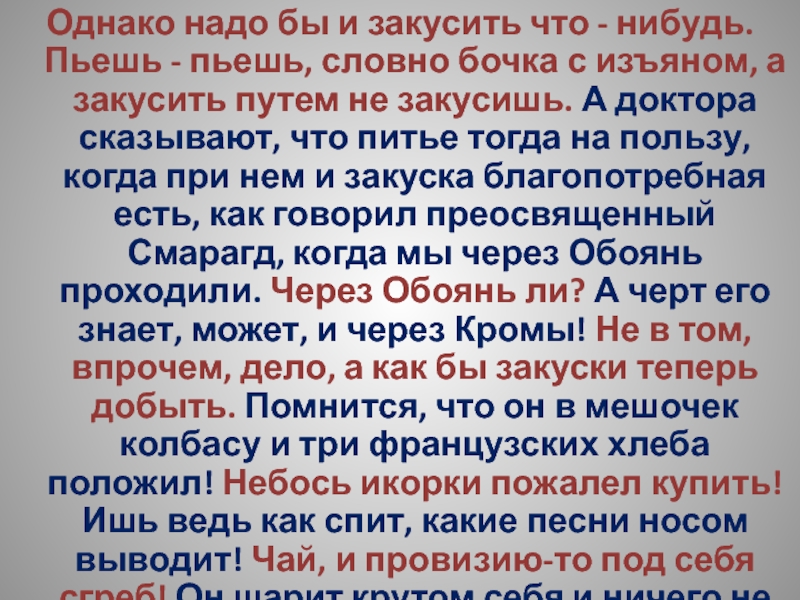 Слайд 48Однако надо бы и закусить что - нибудь. Пьешь - пьешь,