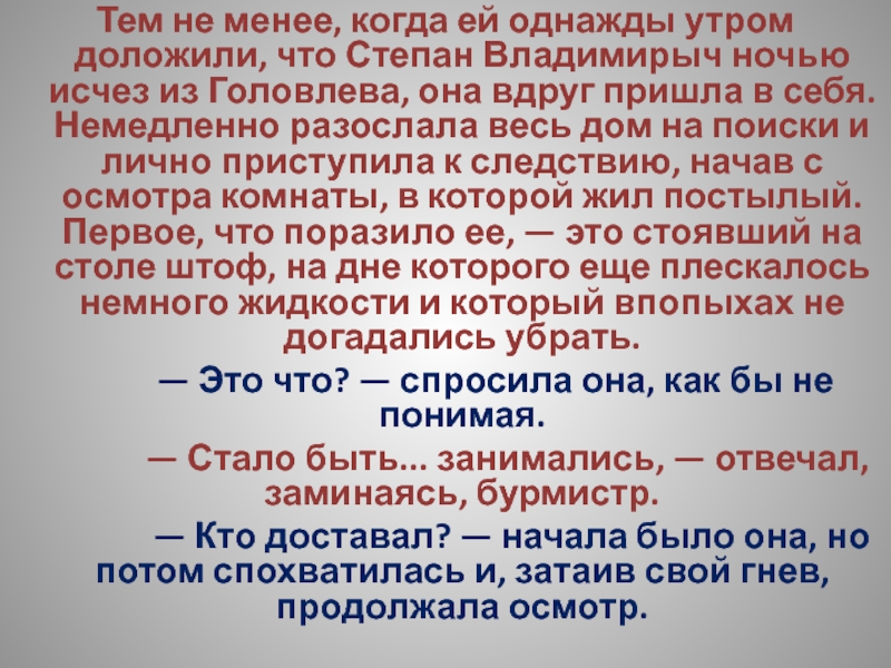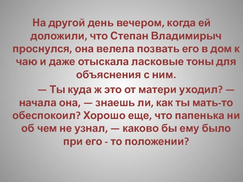 Слайд 196Тем не менее, когда ей однажды утром доложили, что Степан Владимирыч