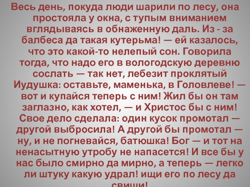 Слайд 202Весь день, покуда люди шарили по лесу, она простояла у окна,