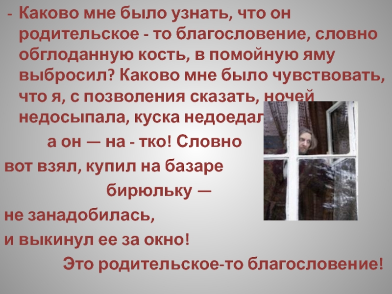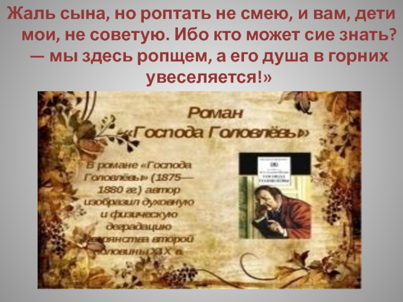 Слайд 230Жаль сына, но роптать не смею, и вам, дети мои, не