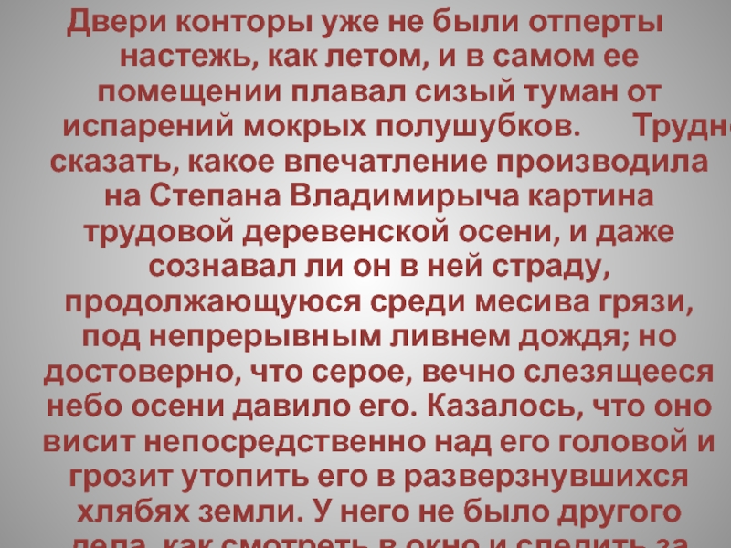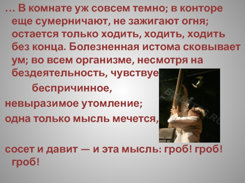Слайд 173 … В комнате уж совсем темно; в конторе еще сумерничают,