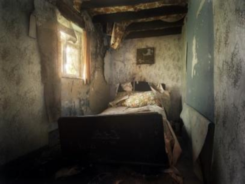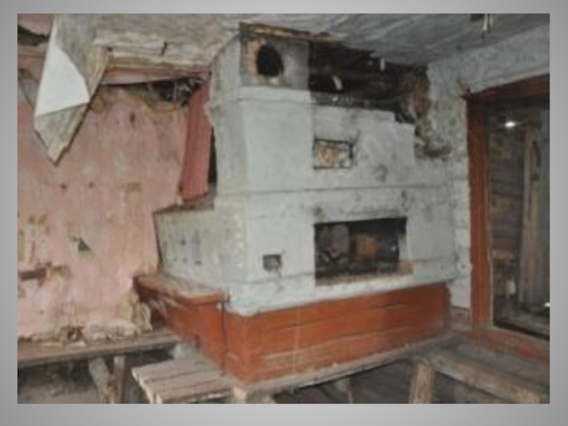 Слайд 184Комната, печь, три окна в наружной стене, деревянная скрипучая кровать и