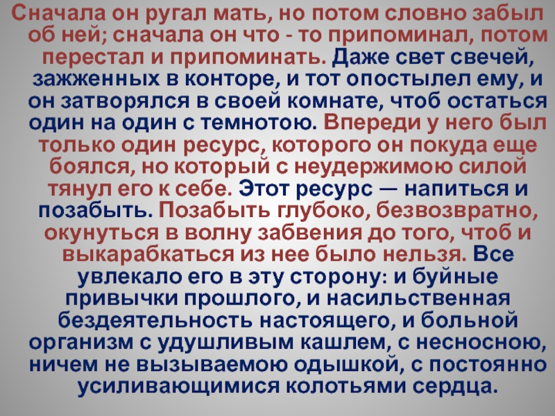 Слайд 176Сначала он ругал мать, но потом словно забыл об ней; сначала