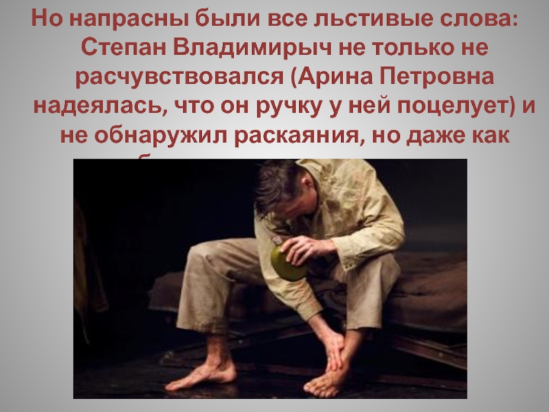 Слайд 218Но напрасны были все льстивые слова: Степан Владимирыч не только не