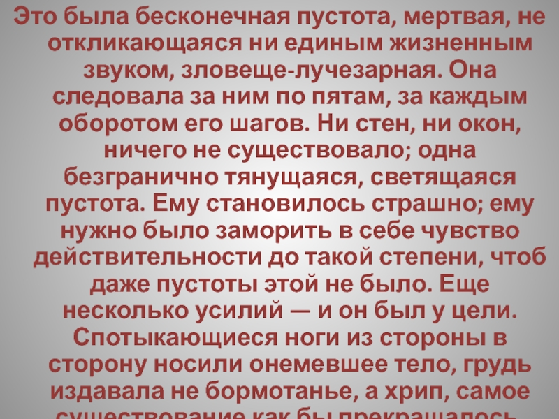 Слайд 186Это была бесконечная пустота, мертвая, не откликающаяся ни единым жизненным звуком,