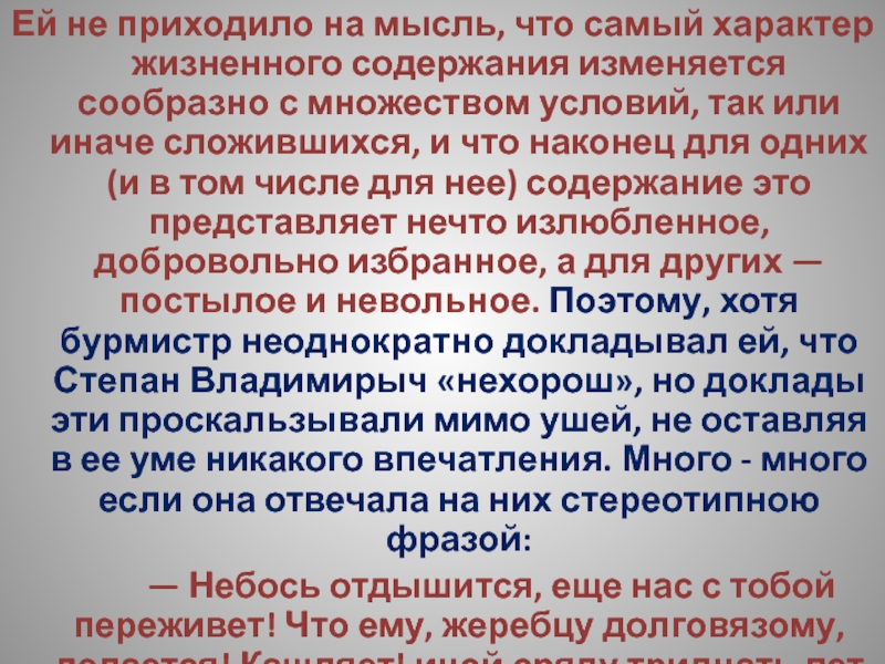 Слайд 194Ей не приходило на мысль, что самый характер жизненного содержания изменяется