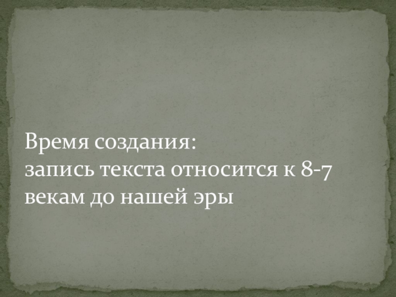 Слайд 3Время создания: запись текста относится к 8-7 векам до нашей эры
